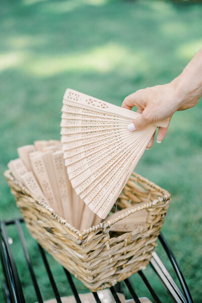If it's going to be hot, a cooler of cold waters and frozen washcloths can help keep a wedding party cool - especially if your men are wearing lots of layers. I love hand held fans too!