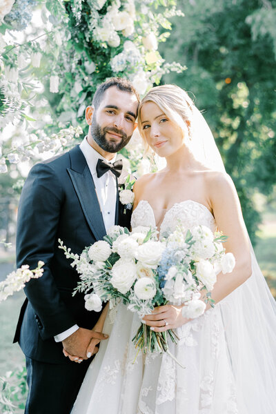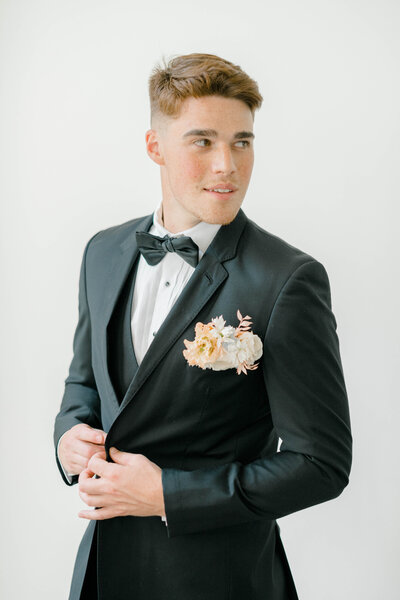 Make sure and have your bouquet delivered in time to make an appearance for the detail shots and for your first look. Often they are delivered in water and need to be dried off before use. Having towels handy can help. It is also helpful to order an extra boutonniere just in case it dies from the heat!