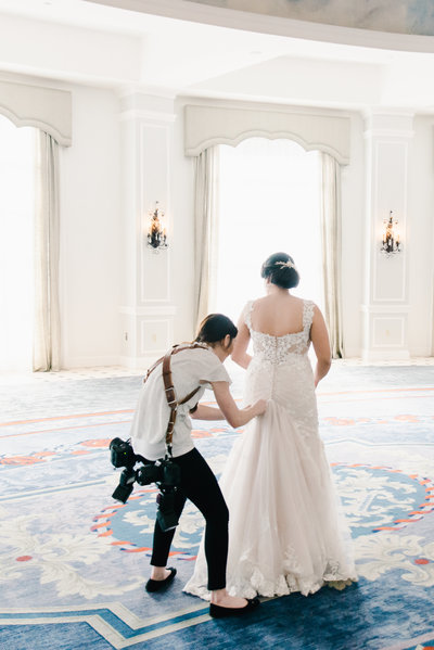 It would be wonderful and create a more seamless experience if you could put all of your rings, jewelry, shoes, veil purse, perfume, invitations and other keepsakes together in one spot for me. Please unwrap your dress but don't worry about styling it - we'll hang it in a beautiful spot! And don't worry you will receive a full list of the items needed one week prior to your wedding day!