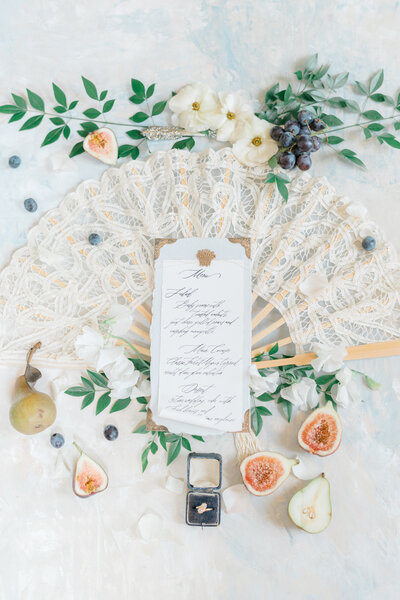 I once had a bride bring her grandmother's hand mirror. This is completely optional - but if you have something sentimental you'd like styled with your details, we love including family heirlooms in our detail shots.