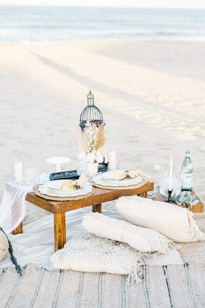 When picking outfits I recommend keeping in mind the word “complement” rather than “match.” For example, if the groom-to-be is wearing a blue and pink pastel plaid shirt, the bride-to-be may want to choose a long, soft blue dress. It can also be a great idea to choose “color-families,” such as pastels or jewel tones.