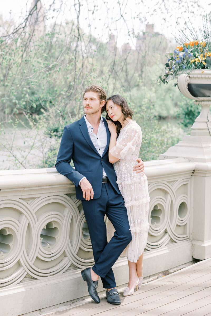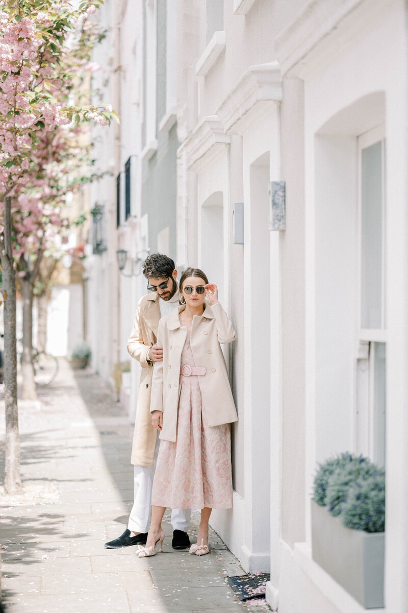 Generally couples pick two outfits for an engagement session: a more formal outfit and a dressy casual outfit. I encourage dressing up a more than you typically would. After all this is a representation of how you want your guests to show up and why not make this moment extra special with a new and gorgeous piece of clothing. I recommend saving your favorite outfit for later in the session, when couples usually feel more comfortable in front of the camera. And don’t forget to bring a few accesorries! Statement necklaces, cute shoes and classic watches are great ways to add detail to outfits.